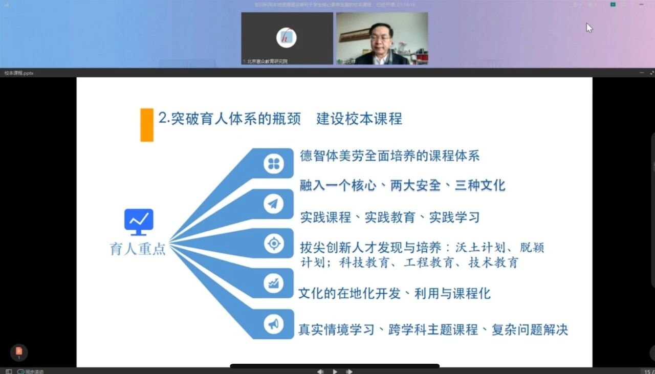 12月30日,华中师范大学教育学院郭元祥教授做客惠众讲堂2025年第6期,以“如何利用本地资源建设有利于学生核心素养发展的校本课程”为主题开展专题讲座。讲座紧扣《教育强国建设规划纲要(2024—2035年)》要求,为学校课程改革与校本课程建设提供了系统指引。